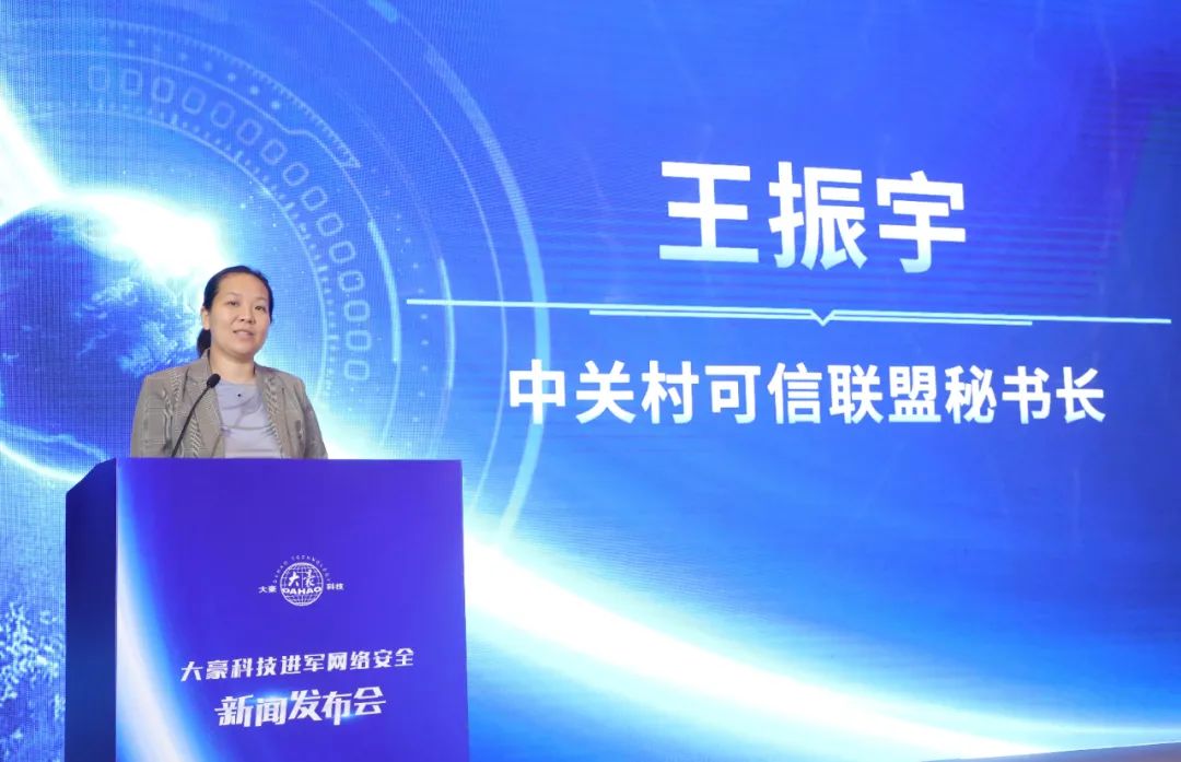 中關村可信聯盟秘書長王振宇上臺致辭,細致分析了網絡安全行業的現狀和未來。她強調應以前瞻性布局占據戰略制高點,以自主創新把握技術產業戰略主動權,積極構建網絡空間防護體系,優化產業政策,打造安全可信的產業生態體系。相信大豪科技和興漢網際在未來行業內,一定大有作為。